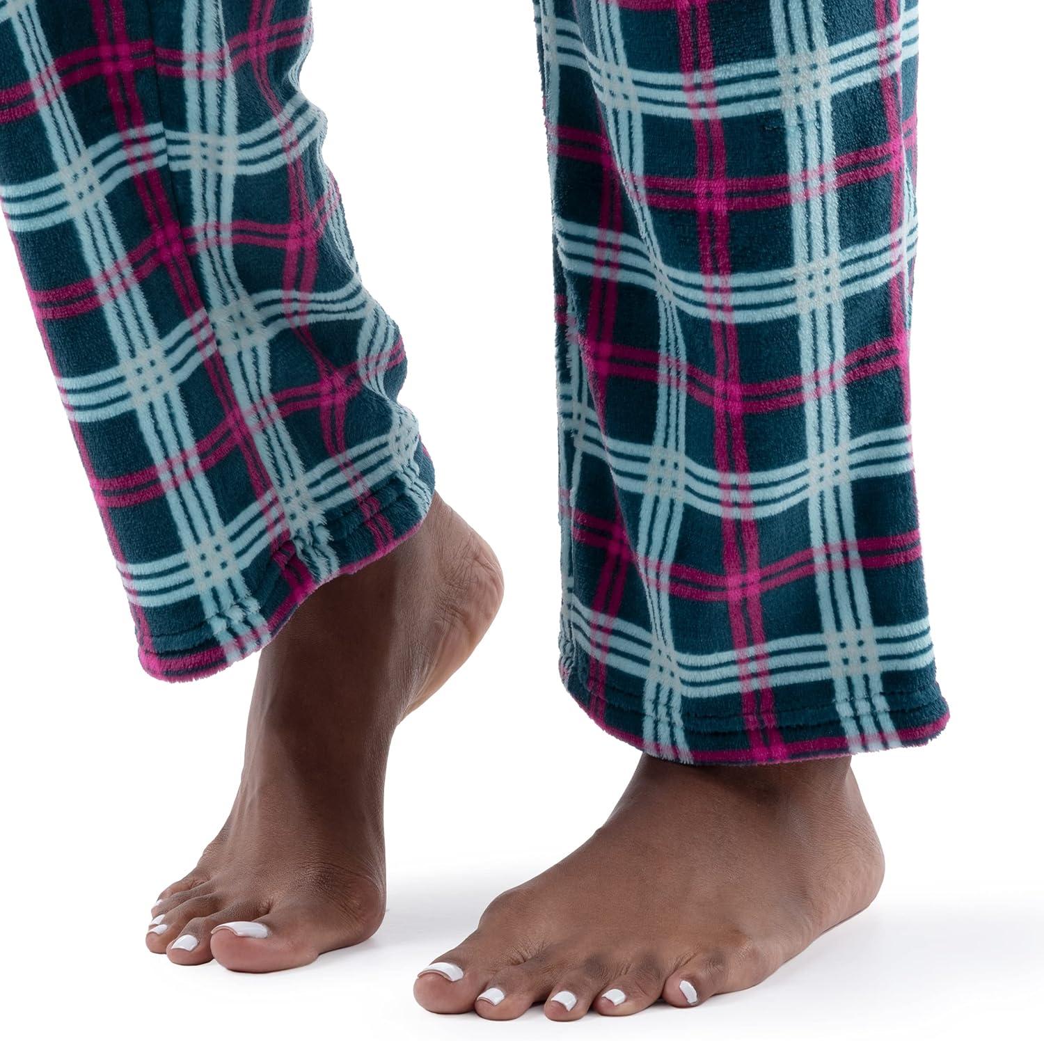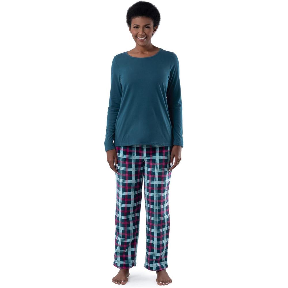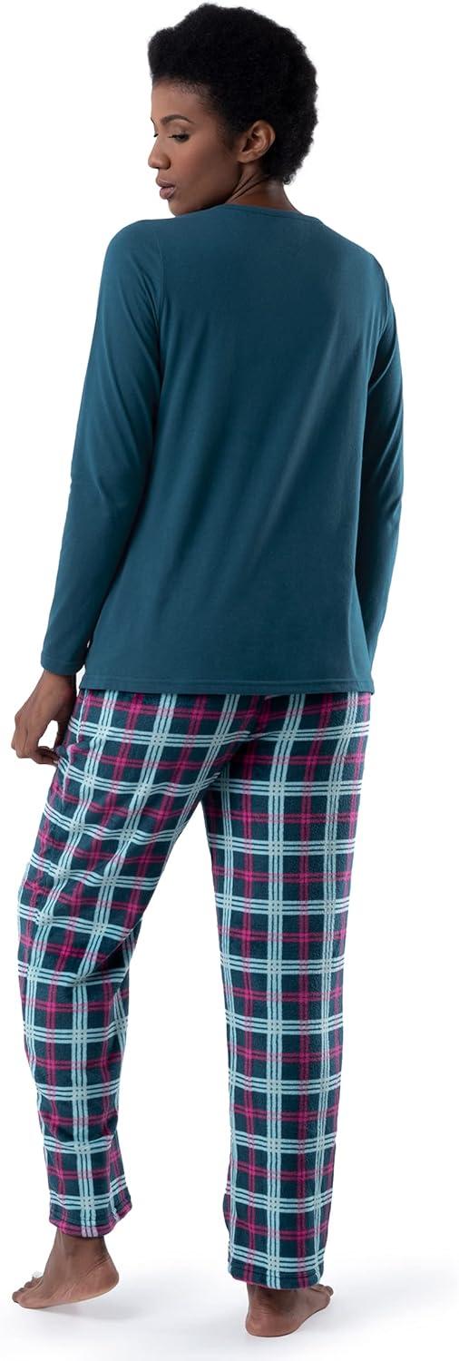 Fruit of the Loom Women’s Sueded Jersey Crew Top and Fleece Pant Sleep Set(Midnight Blue/Tartan Plaid)