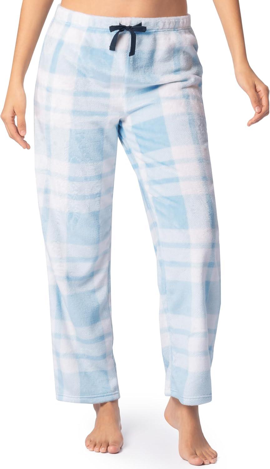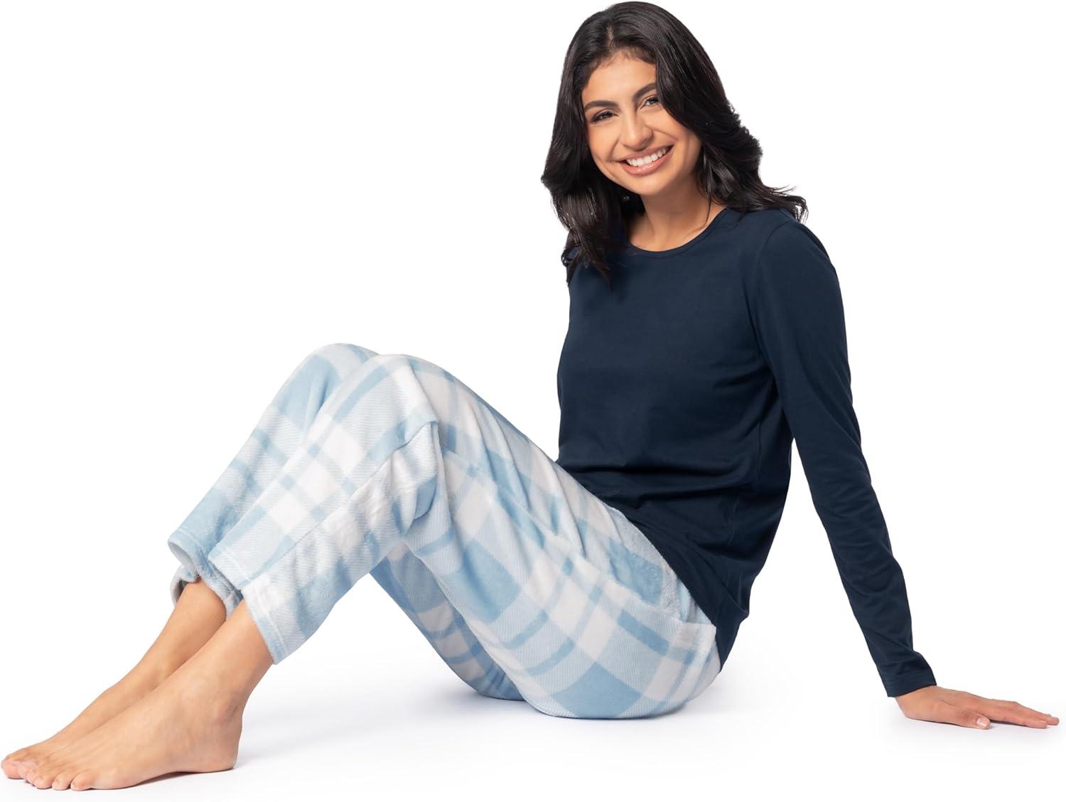 Fruit of the Loom Women’s Sueded Jersey Crew Top and Fleece Pant Sleep Set(Navy/Snow Plaid)