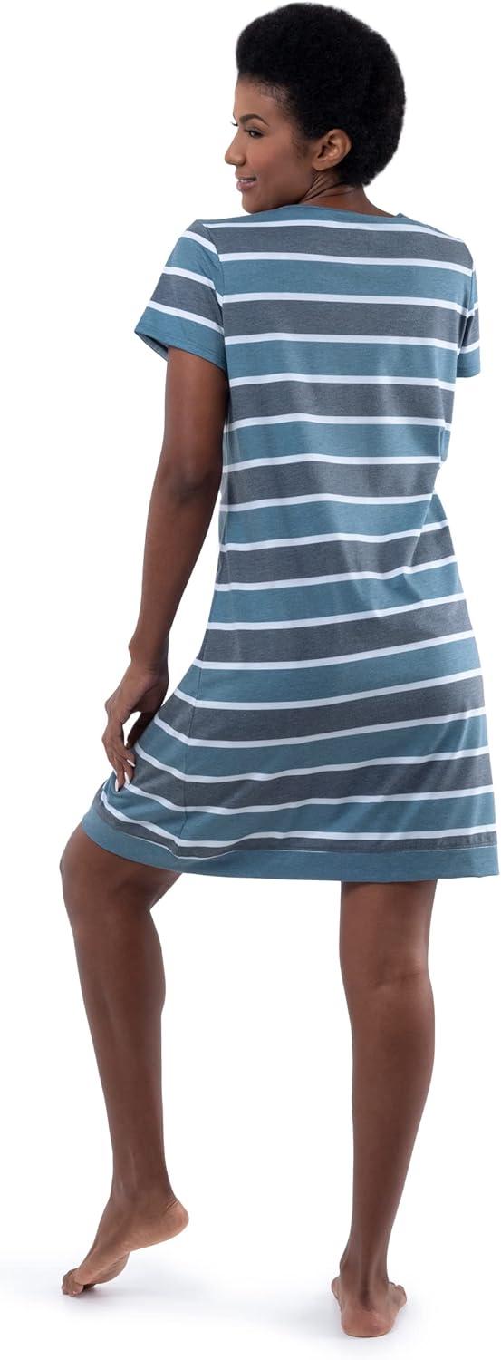 Fruit of the Loom womens Super Soft and Breathable Sleep Shirt(Blue Stripe)