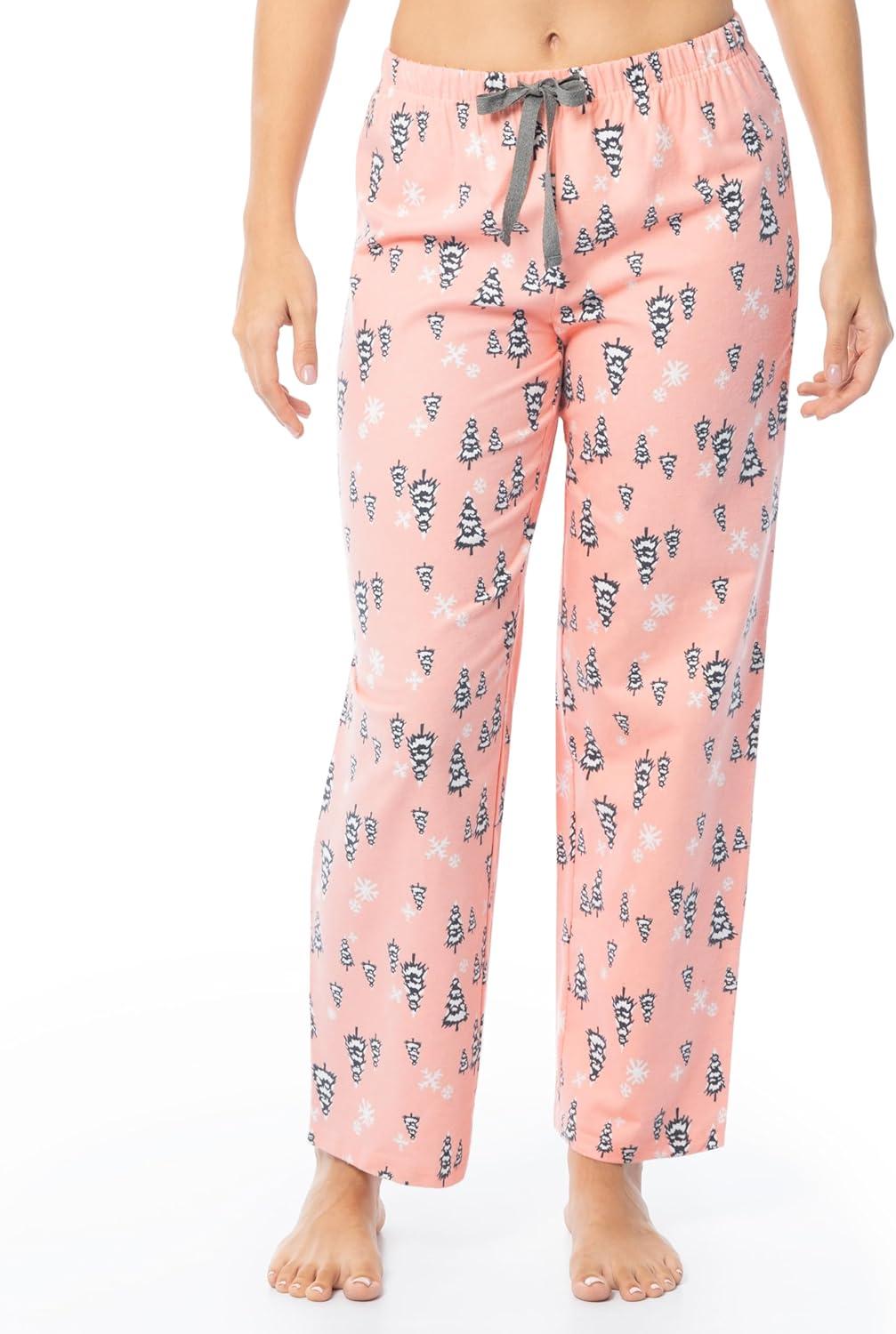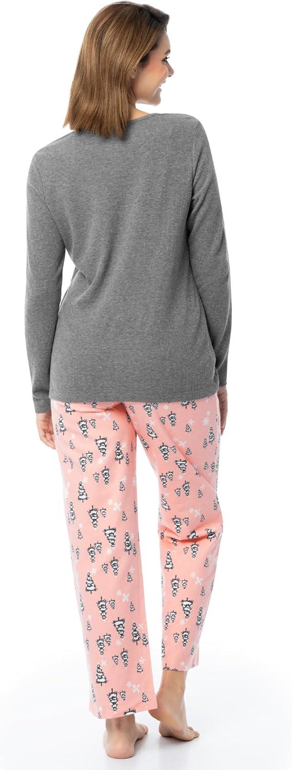 Fruit of the Loom Women’s Waffle V-Neck Top and Flannel Pant Sleep Set(Heather Grey/Snowy Trees)