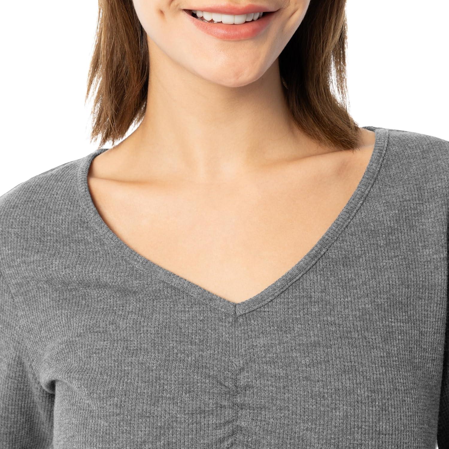 After a long day, there are few better feelings than taking off your work or day clothes and slipping into your favorite snuggly pajama set. This Women’s Fruit of the Loom BeyondSoft V-neck and Flannel Pant Set will keep you warm and comfy after your long day and still have you looking chic! The long-sleeve top made from soft waffle fabric feels soft against the skin, providing just enough warmth and comfort without being overly bulky, and the v-neck collar gives it a modern look that it’s perfect for those who prefer a less constricted neckline. Paired with a cozy flannel sleep pant with a relaxed fit, covered elastic waistband, and drawcord for a snug fit when you need it makes this a great PJ for sleep and those binge-worthy weekends at home. These PJs are all about comfort, but that doesn’t mean you have to scarify your style; with various shirt colors available and matching printed pants featuring classic plaids to more whimsical winter-themed patterns, you’ll look as chic as ever. Give your wardrobe an update this winter with this Women’s Fruit of the Loom BeyondSoft V-neck and Flannel Pant Set.