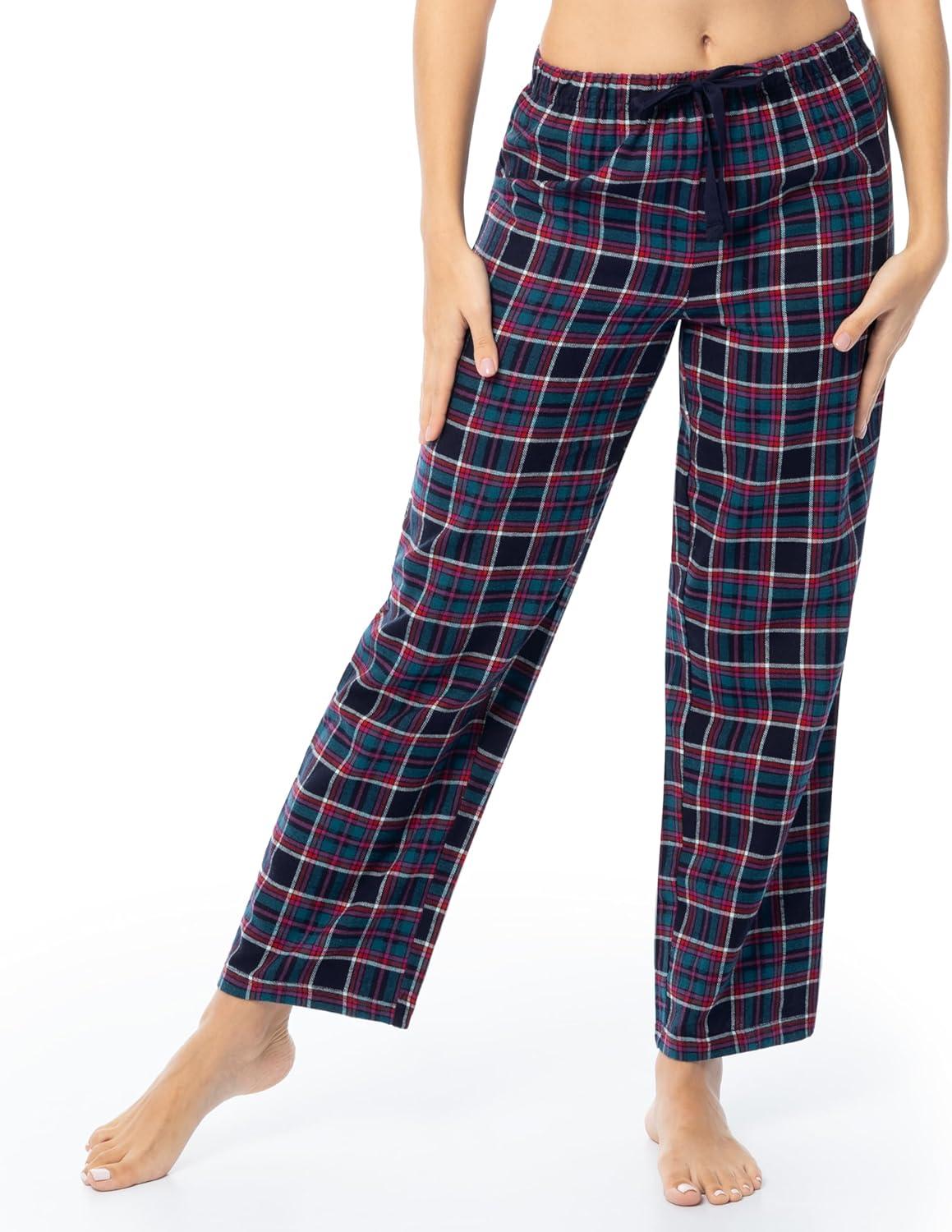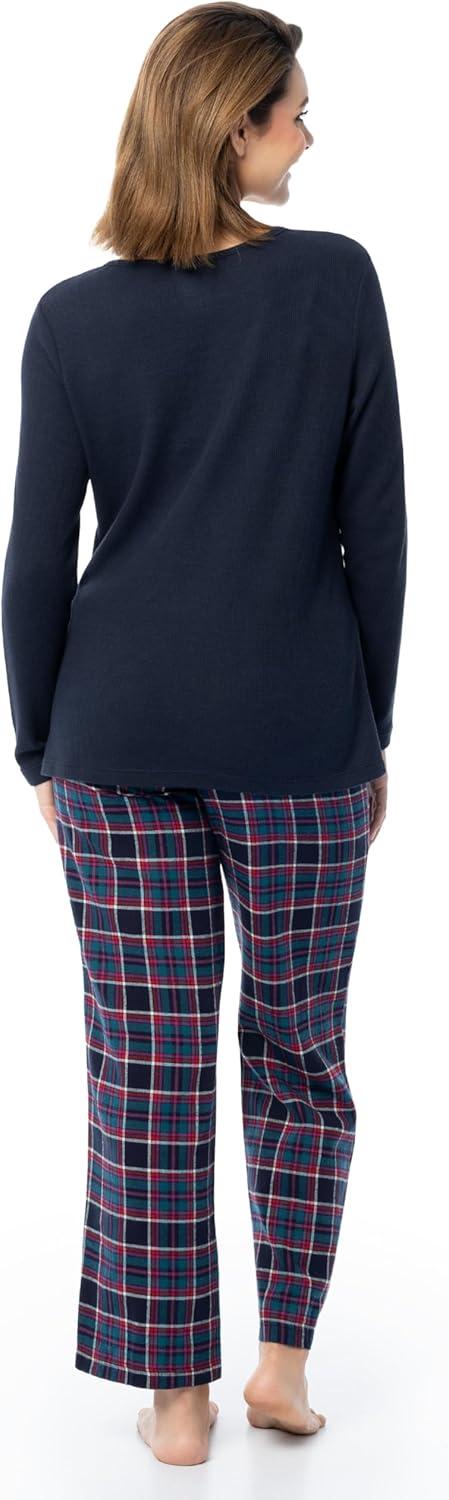 Fruit of the Loom Women’s Waffle V-Neck Top and Flannel Pant Sleep Set(Navy/Holiday Plaid)