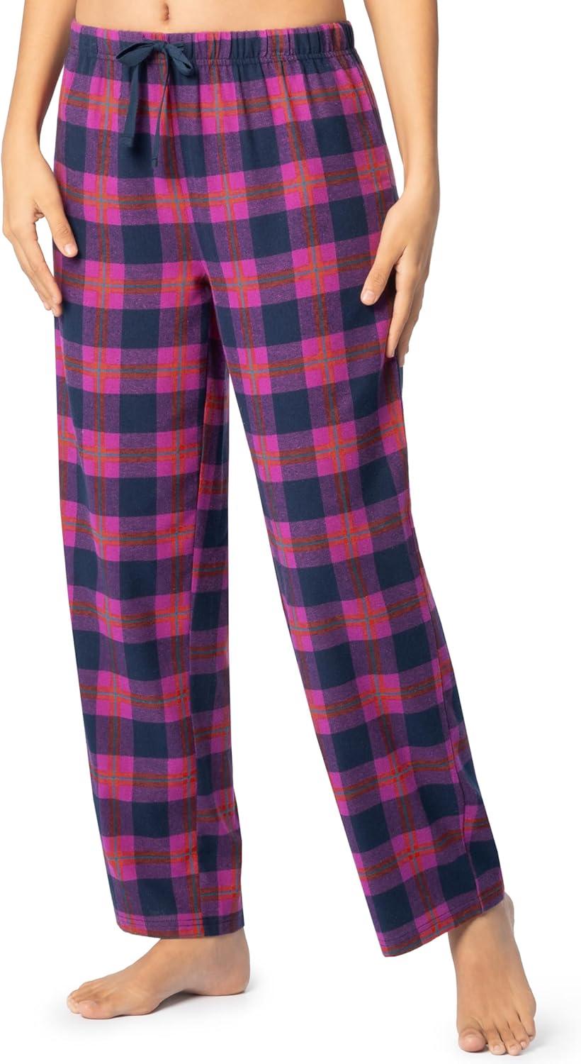 Fruit of the Loom Women’s Waffle V-Neck Top and Flannel Pant Sleep Set(Navy/Holiday Plaid)