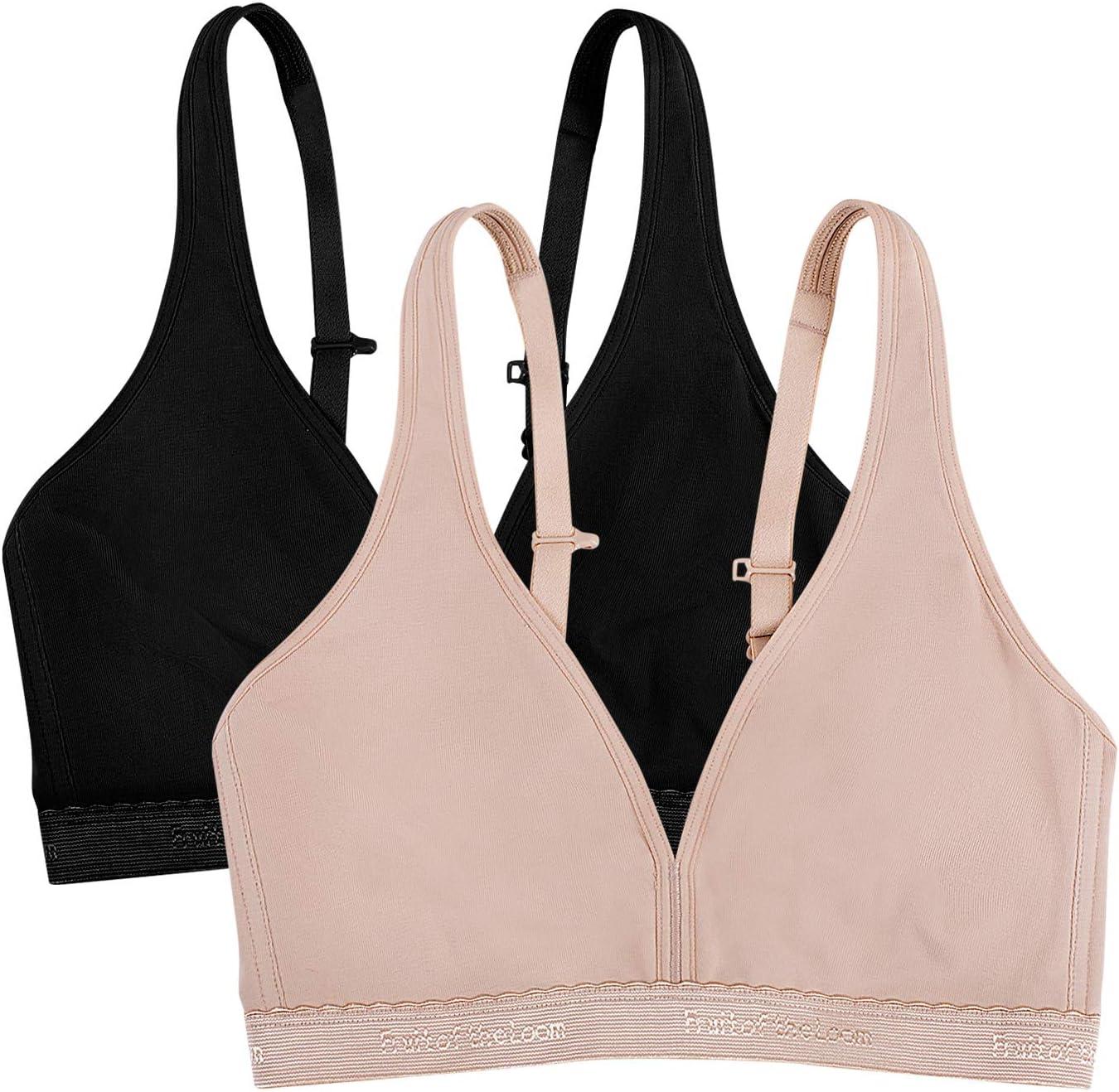 Fruit of the Loom Women’s Wirefree Cotton Bralette(Black Hue/Sand)