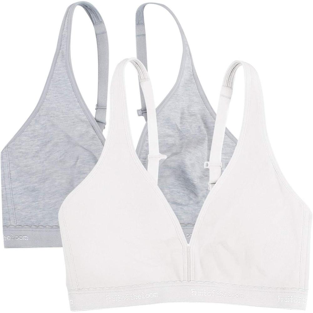 Fruit of the Loom Women’s Wirefree Cotton Bralette(Heather Grey/White)